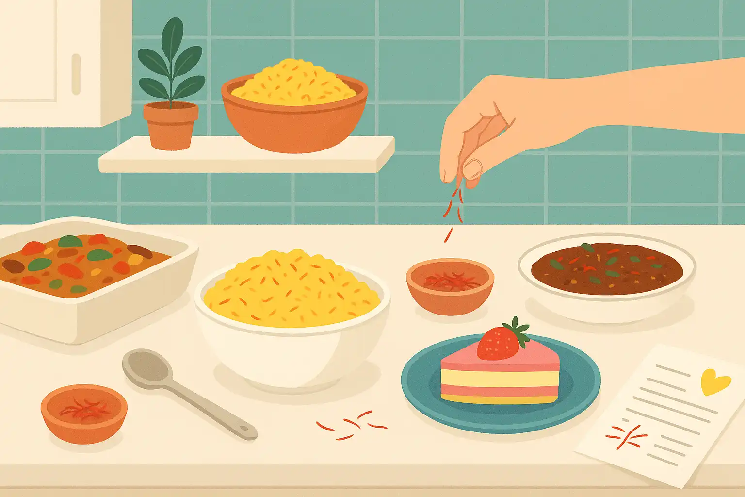 دسرها و شیرینیها: از زعفران در تهیه دسرهایی مانند شلهزرد، فرنی، بستنی سنتی و حتی برخی از انواع کیک و شیرینی استفاده میشود. عطر زعفران این دسرها را بینظیر میکند.