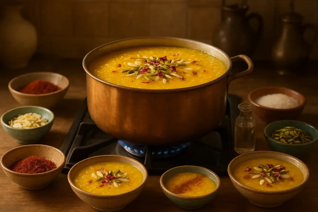 طرز تهیه شله‌زرد نذری با زعفران؛ فوت‌وفن رنگ طلایی