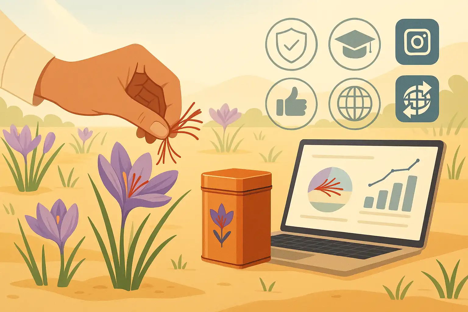برای موفقیت در بازاریابی زعفران ترکیبی از استراتژیهای دیجیتال مارکتینگ و شیوههای سنتی پیشنهاد میشود. مهمترین این استراتژیها به شرح زیر هستند: