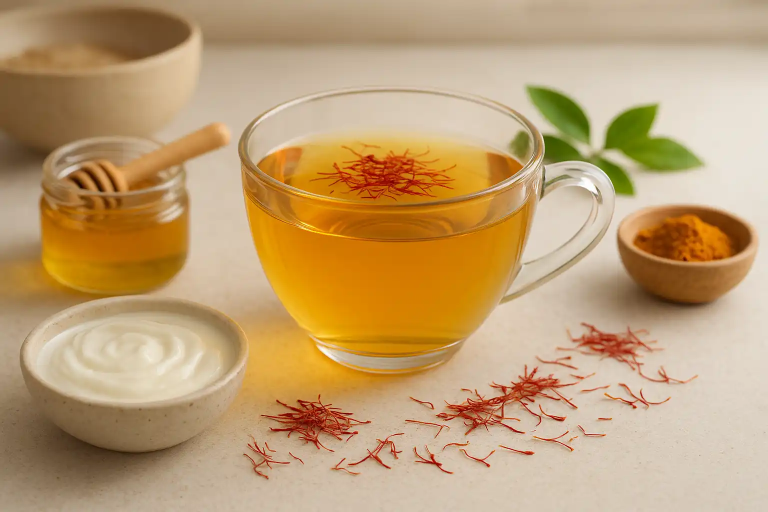 - ۰.۱ تا ۰.۲ گرم زعفران را با آب داغ (حدود ۲۰۰ میلیلیتر) دم کنید.
