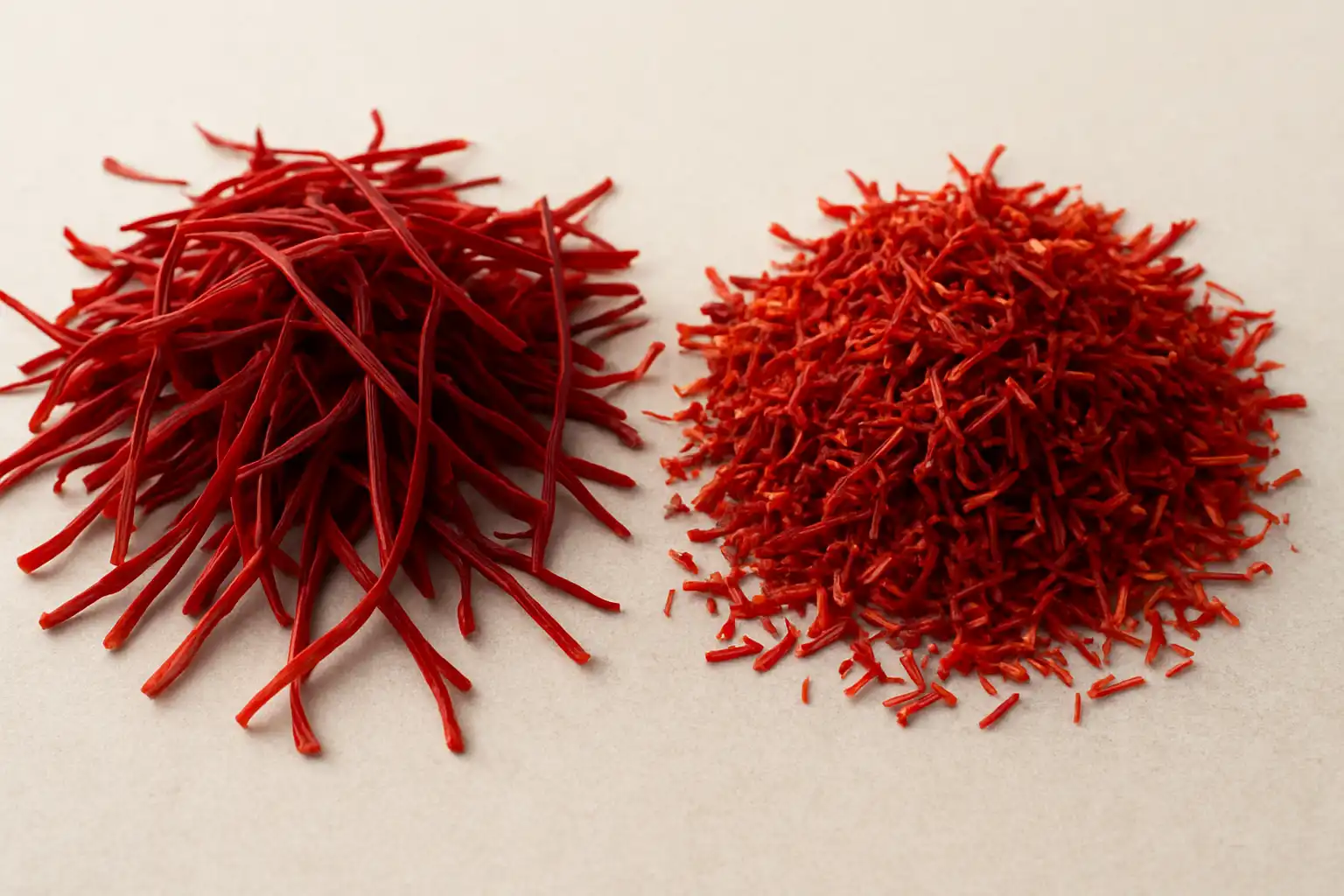 - زعفران سرگل: رشتههای کوتاهتر، سرقلمهای قرمز، با امکان وجود کمی سفیدی