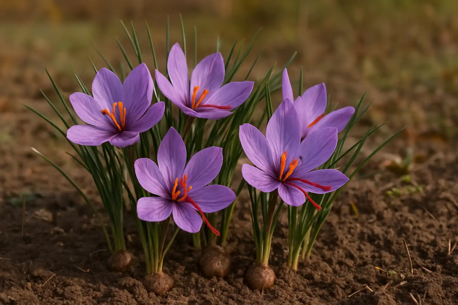 - گلهای زعفران اغلب به صورت دستهای از خاک بیرون میآیند و طی یک دوره کوتاه گلدهی، برداشت میشوند.